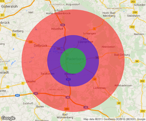 Die Anfahrtskosten richten sich nach der Entfernung; als Überblick dient Ihnen die beiliegende Karte.